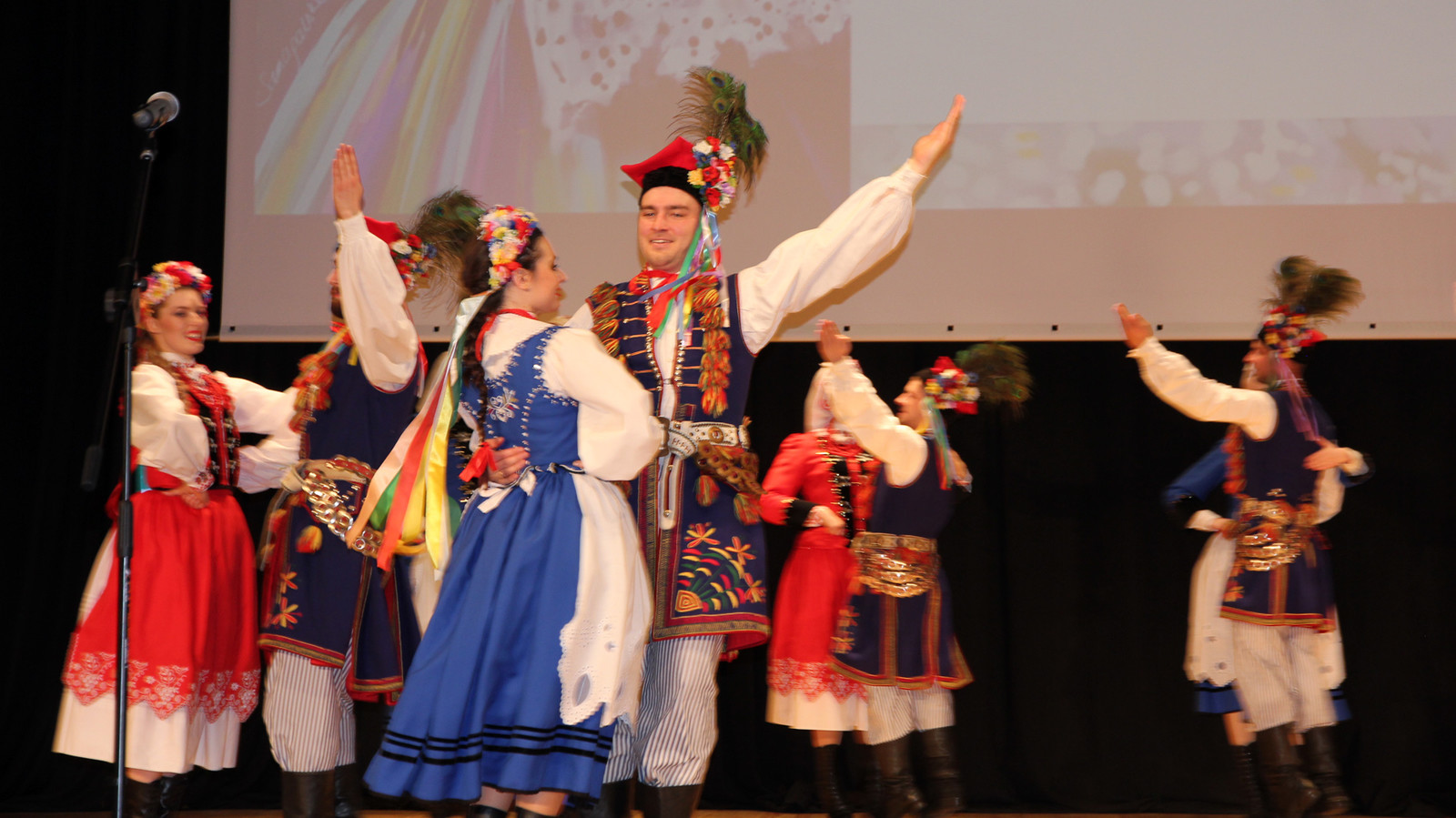 Podczas koncertu można było zobaczyć barwne tańce narodowe: poloneza i krakowiaka, zabawną polkę warszawską oraz dynamiczne tańce ludowe: sądeckie, Krakowiaków Wschodnich , przeworskie i rzeszowskie. Zespół zaśpiewał również piękne pieśni „Kochajmy się bracia mili”, „Kraj rodzinny matki mej”, „Maki” i „Olszynkę”.