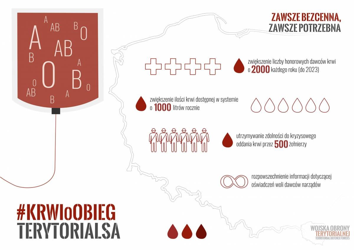 Projekt „KRWIOoBIEG TERYTORIALSA” realizowany jest razem z kampanią „Twoje TAK ma znacznie” we współpracy z Fundacją Śląskiego Centrum Chorób Serca w Zabrzu. W ramach akcji planowane jest zwiększenie liczby honorowych dawców krwi o 2 000 każdego roku, co oznacza, że do systemu krwiodawstwa i krwiolecznictwa wpłynie dodatkowe 1 000 litrów krwi rocznie.