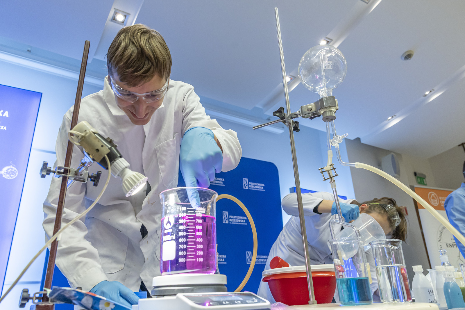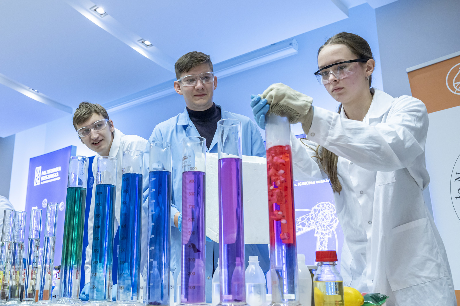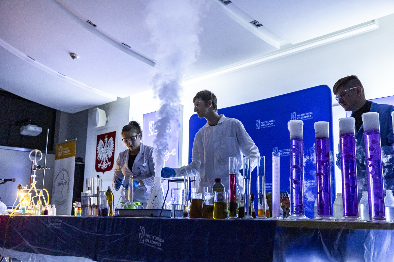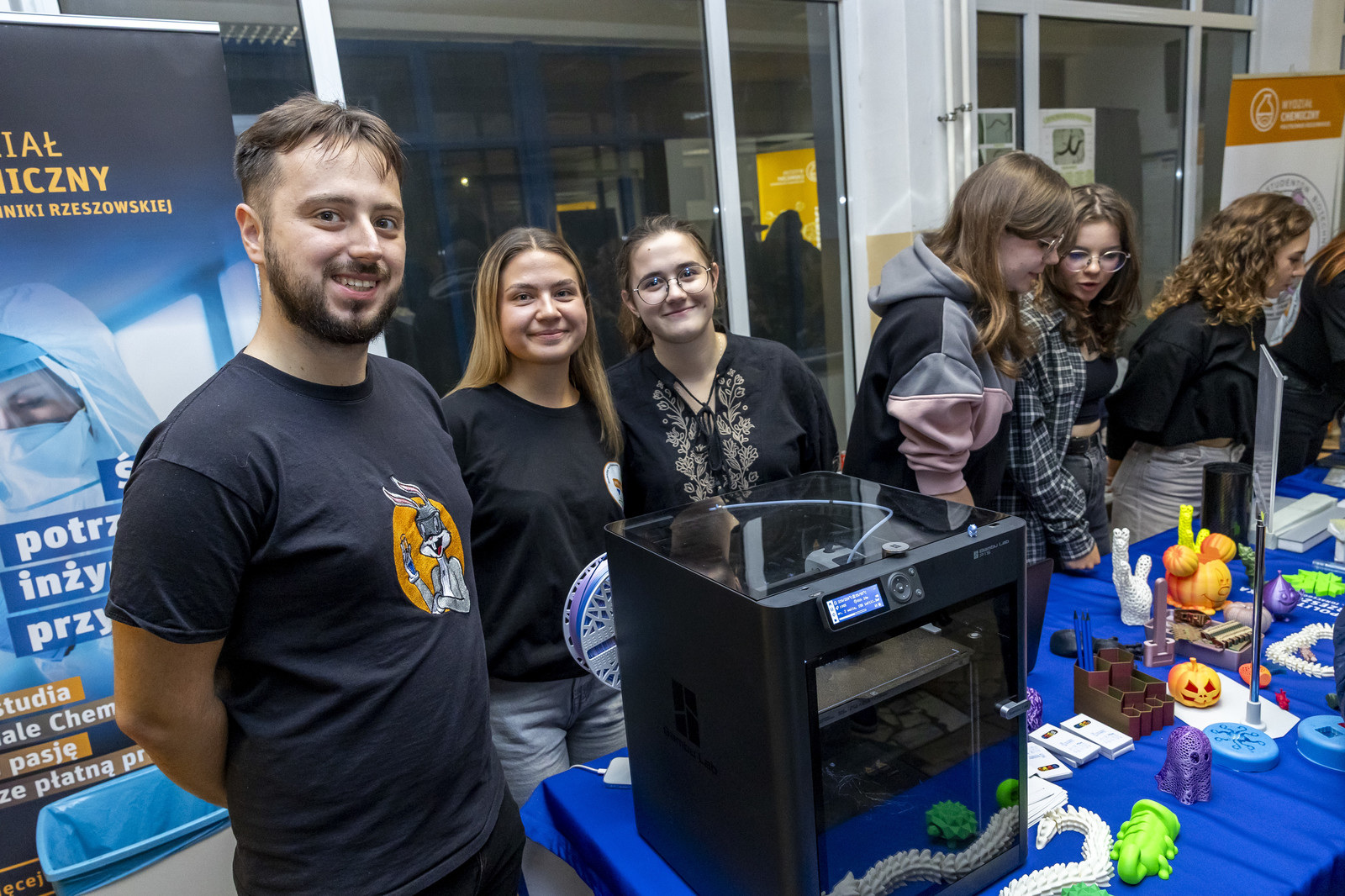 - na Wydziale Chemicznym – pokazy „Czy na Wydziale Chemicznym straszy? – znikający duch”, „Chemiczne zwierzęta – wąż i kameleon”, „Wstrząśnięty błękit”, „Chemiczna lawa”, Techniki in vitro i in vivo w badaniach biotechnologicznych (Koło Naukowe Insert), Lewitacja akustyczna, Lasery i fluorescencja Biomodelowanie 3D z użyciem gestów rąk (Koło Naukowe Ab Initio), Kolorowa ekstrakcja ATPE, Wpływ temperatury na właściwości materiałów, Stwórz swój eliksir (Koło Naukowe IPSUM), Świat polimerami drukowany (Koło Naukowe Przetwórcy) Laboratorium piwowara – pokaz warzenia piwa (Koło Naukowe PRzy Piwie),