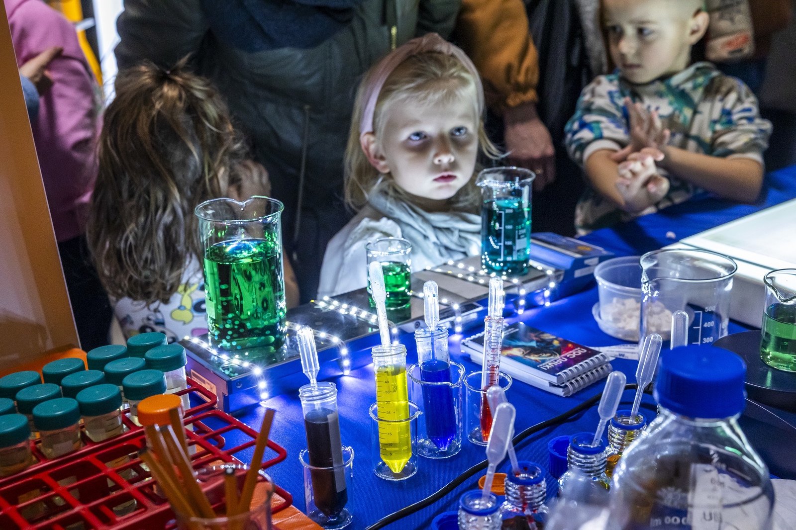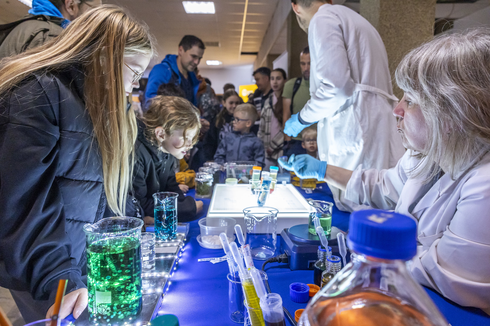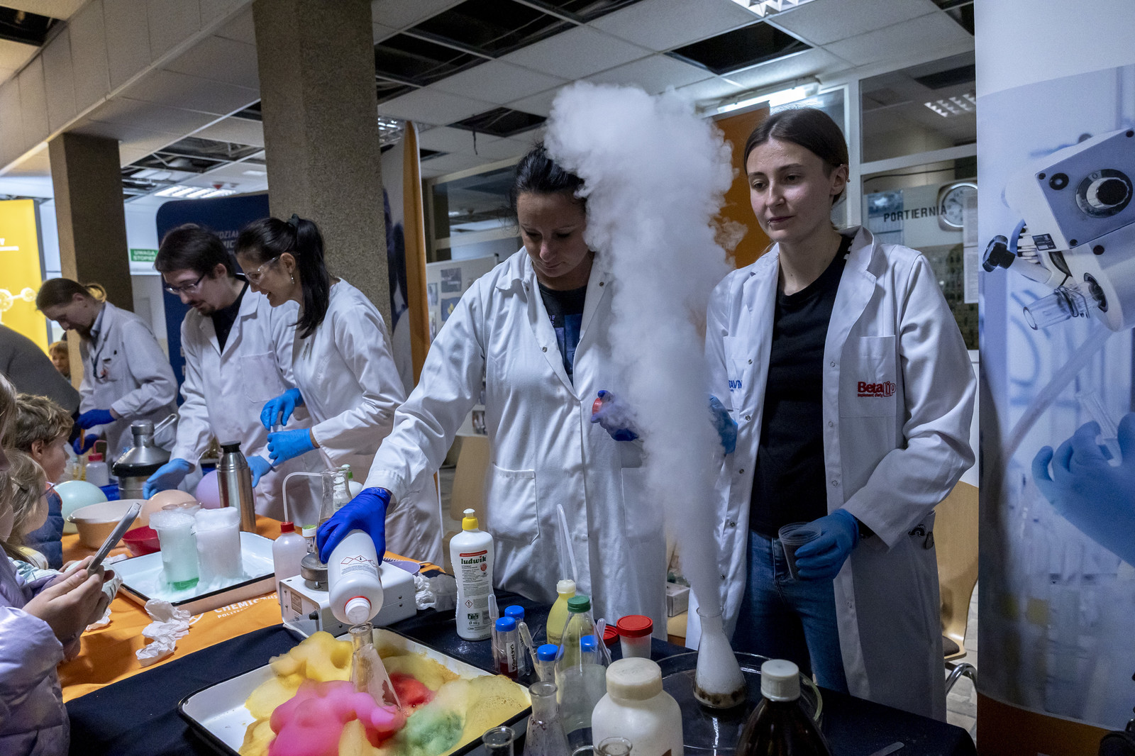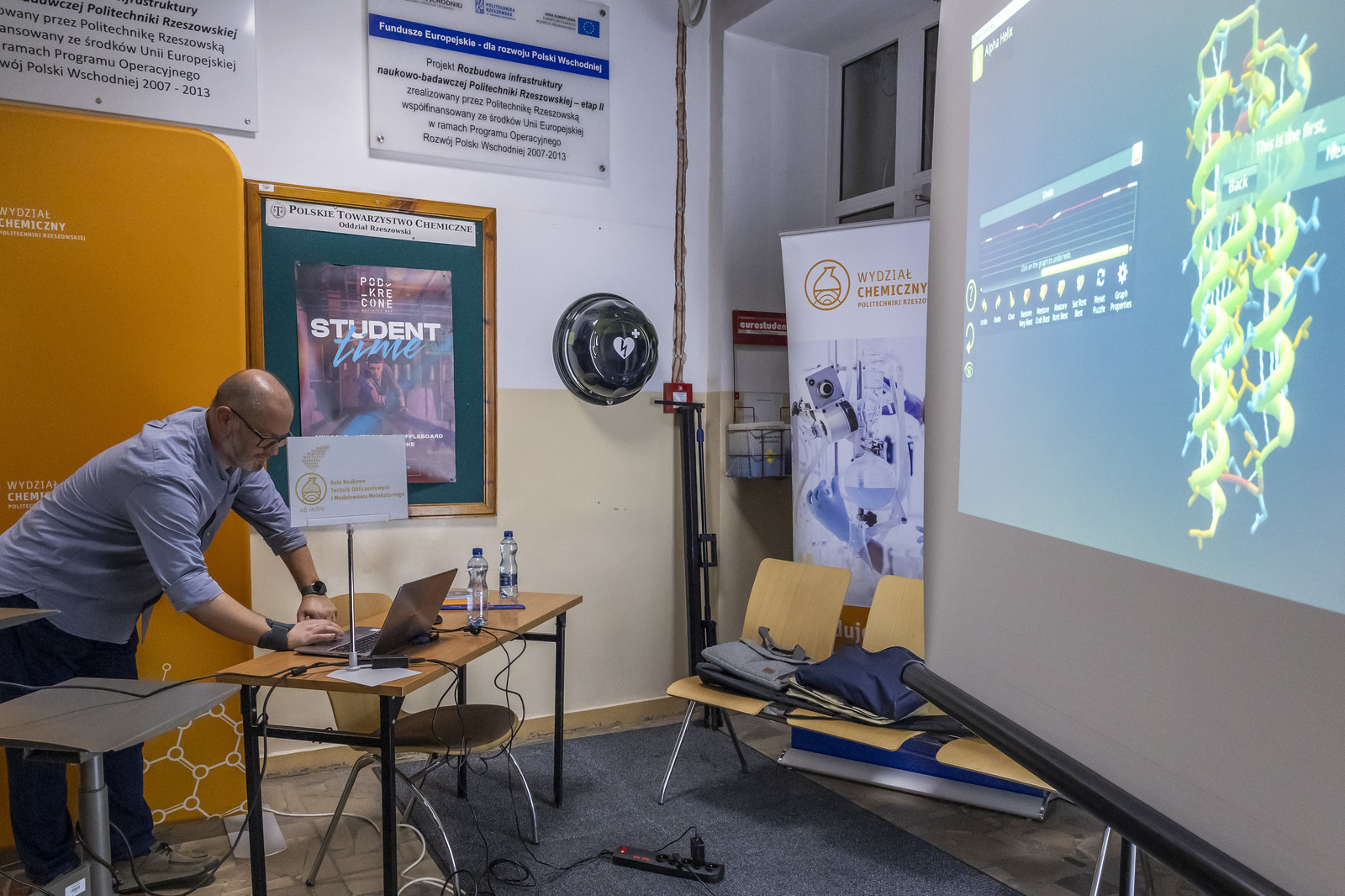 - na Wydziale Chemicznym – pokazy „Czy na Wydziale Chemicznym straszy? – znikający duch”, „Chemiczne zwierzęta – wąż i kameleon”, „Wstrząśnięty błękit”, „Chemiczna lawa”, Techniki in vitro i in vivo w badaniach biotechnologicznych (Koło Naukowe Insert), Lewitacja akustyczna, Lasery i fluorescencja Biomodelowanie 3D z użyciem gestów rąk (Koło Naukowe Ab Initio), Kolorowa ekstrakcja ATPE, Wpływ temperatury na właściwości materiałów, Stwórz swój eliksir (Koło Naukowe IPSUM), Świat polimerami drukowany (Koło Naukowe Przetwórcy) Laboratorium piwowara – pokaz warzenia piwa (Koło Naukowe PRzy Piwie),