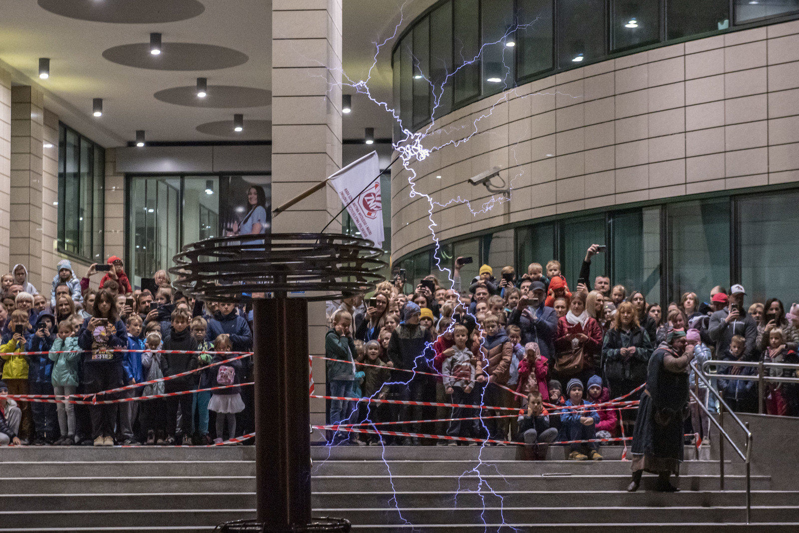 Najbardziej wyczekiwaną atrakcją Nocnych Spotkań z Nauką był „Teatr wysokich napięć”. Podczas spektaklu wykorzystany został jeden z największych w swojej klasie transformatorów Tesli. Był to niecodzienny widok kilkumetrowych wyładowań, które w rytm muzyki rozświetlały mrok.