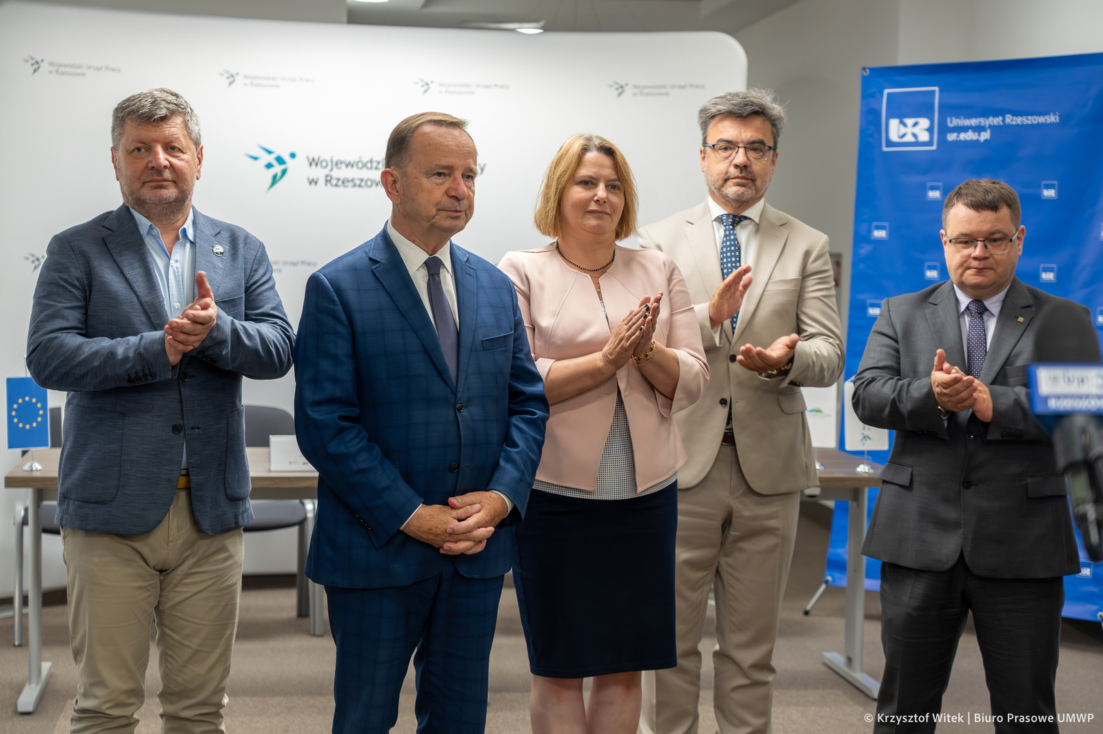 W spotkaniu uczestniczyli marszałek województwa podkarpackiego Władysław Ortyl, członek zarządu Anna Huk, rektor Politechniki Rzeszowskiej prof. Piotr Koszelnik, rektor Uniwersytetu Rzeszowskiego prof. Adam Reich i dyrektor Wojewódzkiego Urzędu Pracy w Rzeszowie Tomasz Czop.