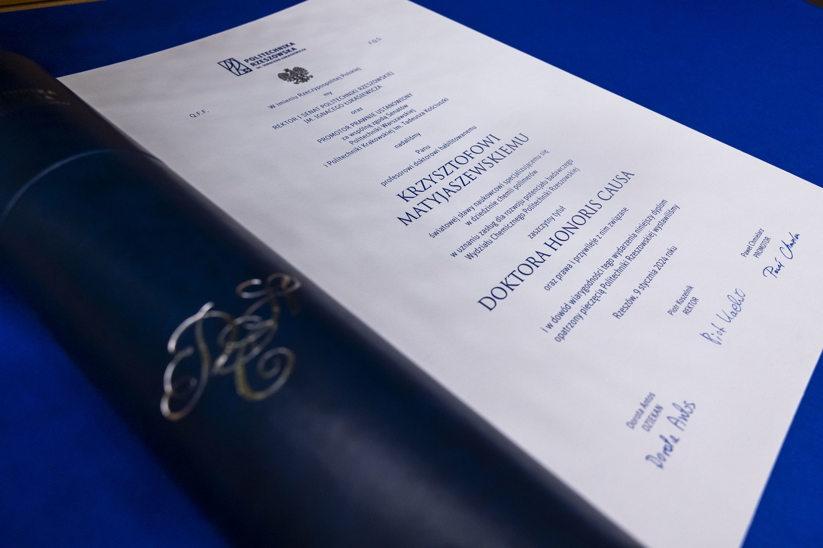 Tytuł i godność doktora honoris causa prof. Krzysztofowi Matyjaszewskiemu został nadany podczas uroczystego posiedzenia Senatu Politechniki Rzeszowskiej. W wydarzeniu uczestniczyli rektorzy i prorektorzy oraz naukowcy uczelni współpracujących z Politechniką Rzeszowską. Na uroczystość przybyli również przedstawiciele władz miasta i regionu, służb mundurowych, wielu instytucji współpracujących z naszą uczelnią i Wydziałem Chemicznym oraz pracownicy i studenci naszej uczelni.