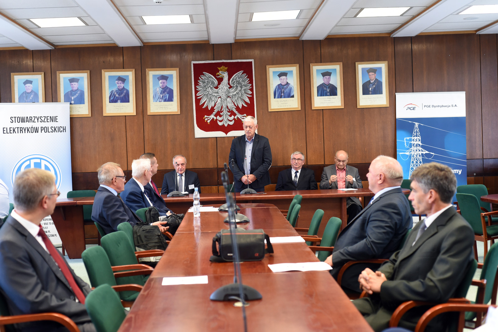 Dziekan WEiI prof. Kazimierz Buczek w swoim wystąpieniu wspominał twórców Seminarium Metrologów, wśród nich prof. Bohdana Stadnyka z Politechniki Lwowskiej oraz prof. dr. hab. inż. Adama Kowalczyka z Politechniki Rzeszowskiej.