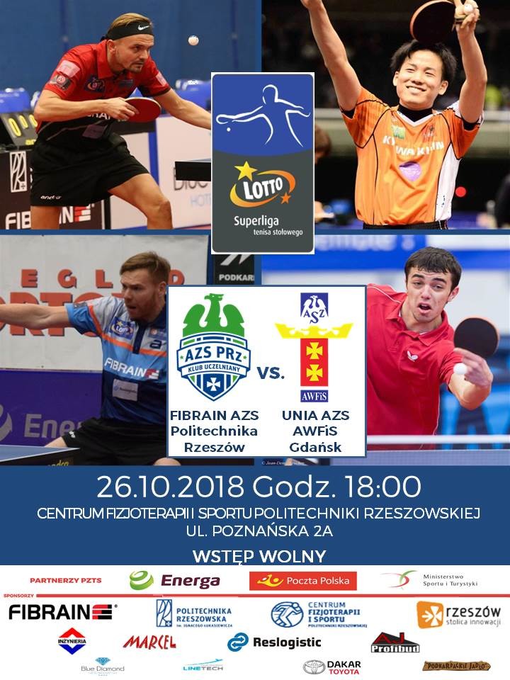 Klub Uczelniany Akademickiego Związku Sportowego Politechniki Rzeszowskiej zaprasza na mecz LOTTO Superligi Tenisa Stołowego Mężczyzn.